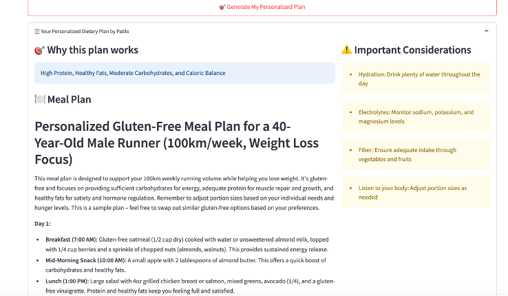 Within a couple of minutes, I had an app running that responded dynamically to user inputs, crafting holistic meal and fitness plans with ease.