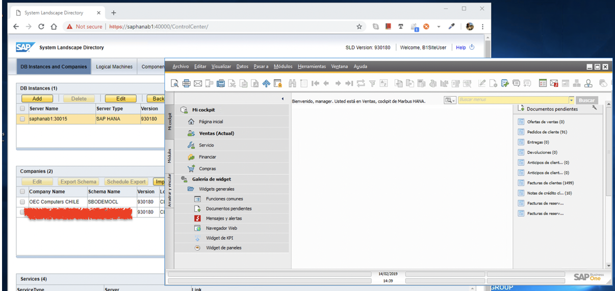 Esta es una imagen del cliente SAP Business One funcionando desde mi escritorio conectado a la sociedad en Google Cloud Platform. La latencia es bastante aceptable (depende mucho de la parte de configuracion técnica):